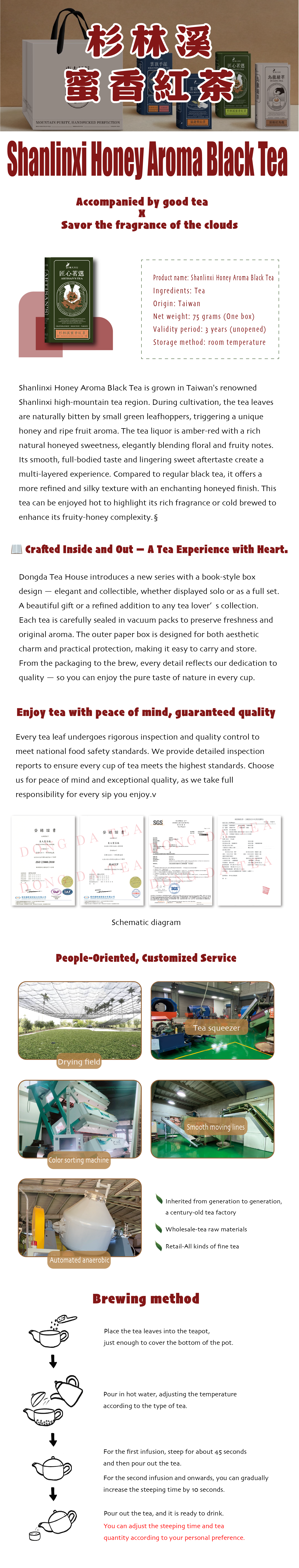 Shanlinxi Honey Black Tea is a high-quality red tea produced in Shuanglinxi, Nantou County, Taiwan, renowned for its unique honey fragrance and sweetness.