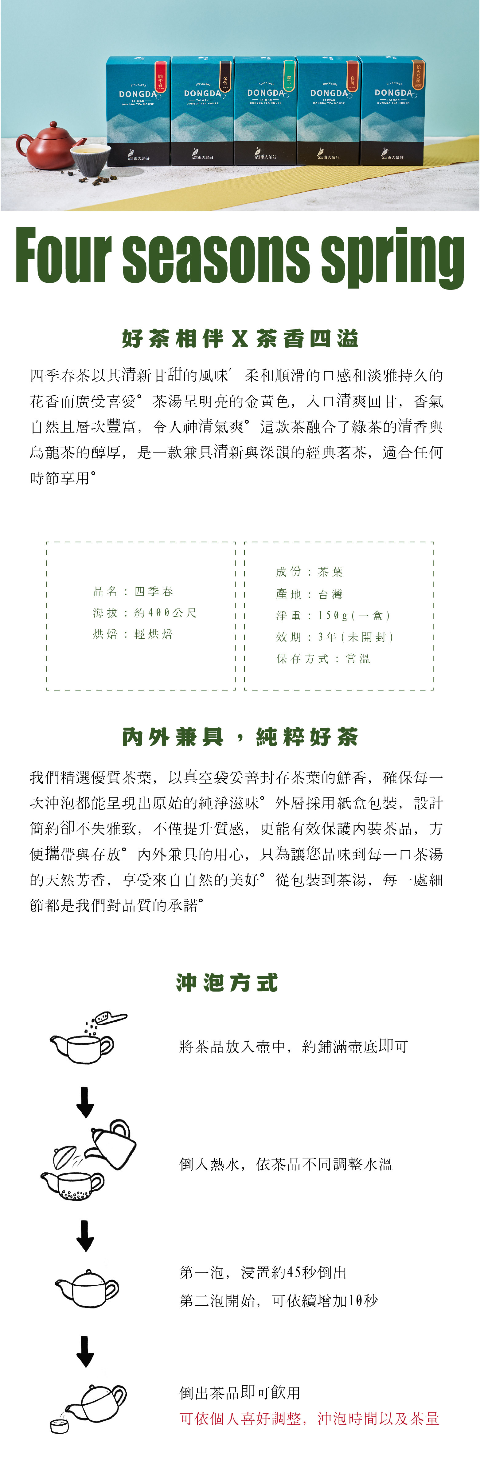 四季春茶香氣清雅,常帶有淡淡花香與甘甜餘韻。