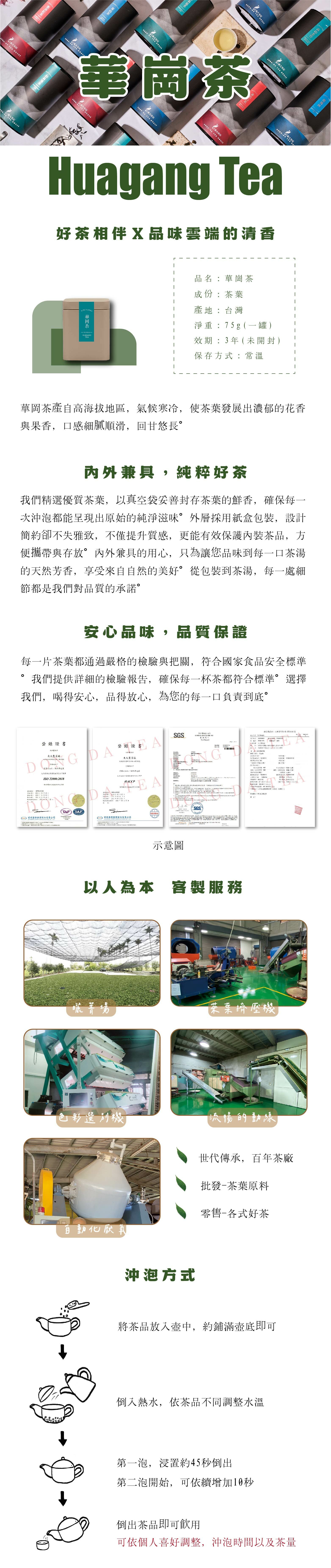 茶湯澄澈明亮,帶著微妙的金黃色澤,散發著迷人的花果香氣,讓您一口沉醉其中。每一杯華崗烏龍茶都是品味的享受,令人陶醉的品質將為您帶來絕佳的茶飲體驗。