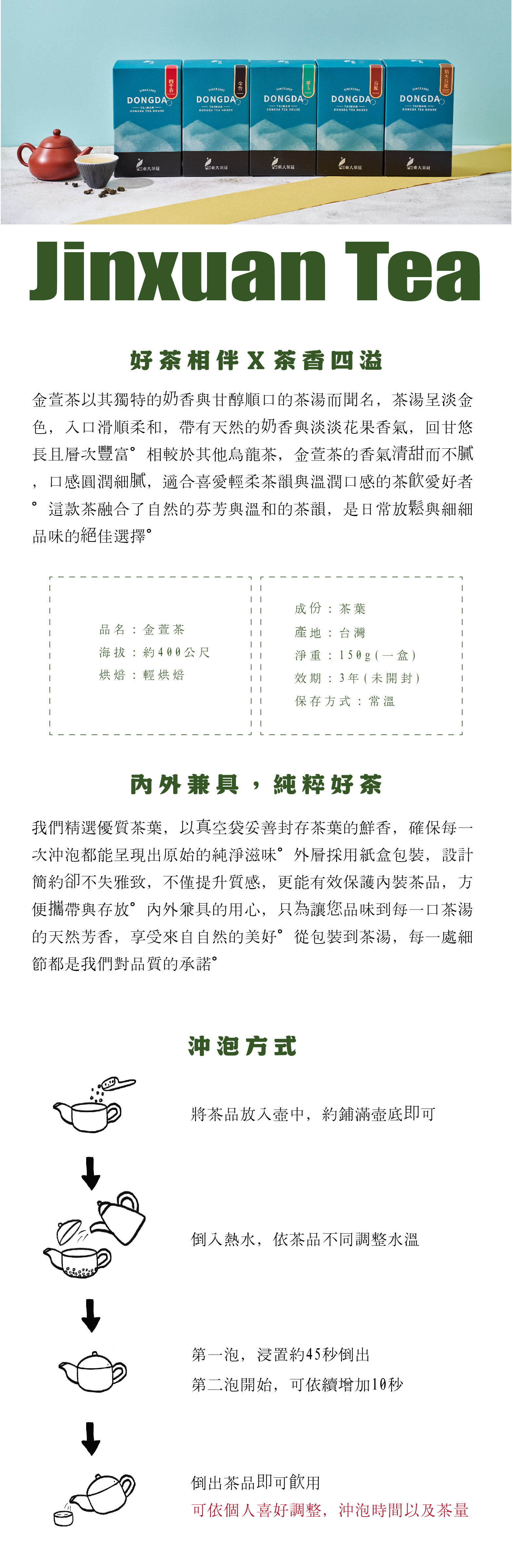 金萱茶以其天然奶香聞名,香氣柔和,茶湯滑順甘甜,帶有輕烘焙的溫潤口感。適合喜愛溫潤香氣與甜感的茶友,是近年最受歡迎的品種之一。