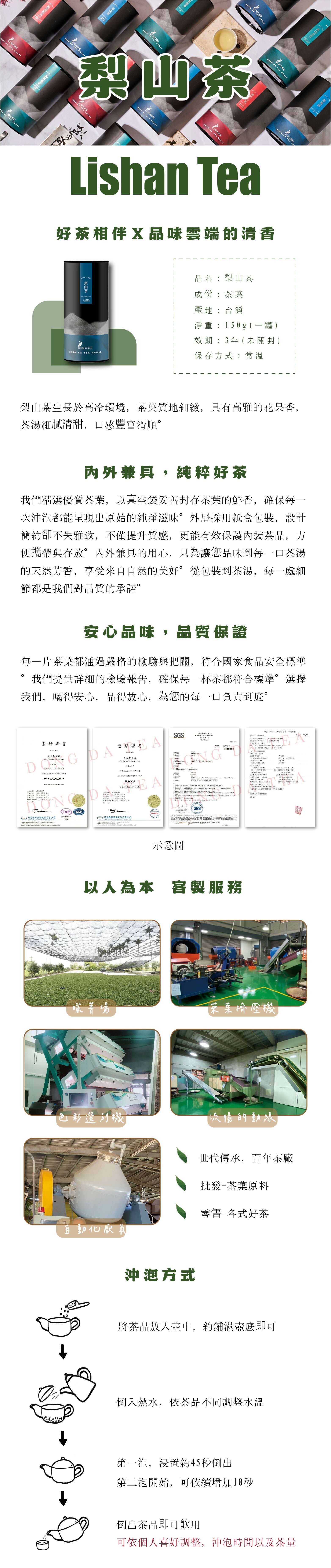 梨山茶生長於高冷環境,茶葉質地細緻,具有高雅的花果香,茶湯細膩清甜,口感豐富滑順。