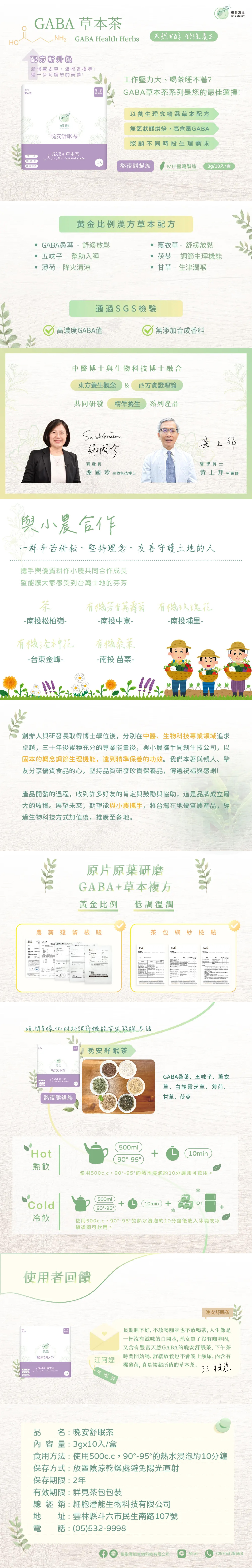 內含GABA桑葉、五味子、薰衣草、白鶴靈芝草、薄荷、甘草、茯苓,多項養生中藥材