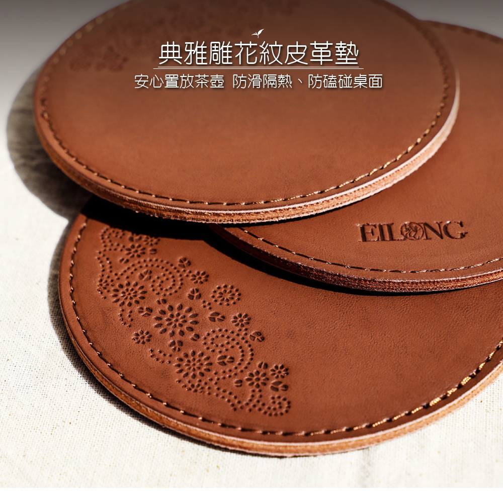 .典雅雕花紋皮革墊-安心置放茶壺,防滑隔熱